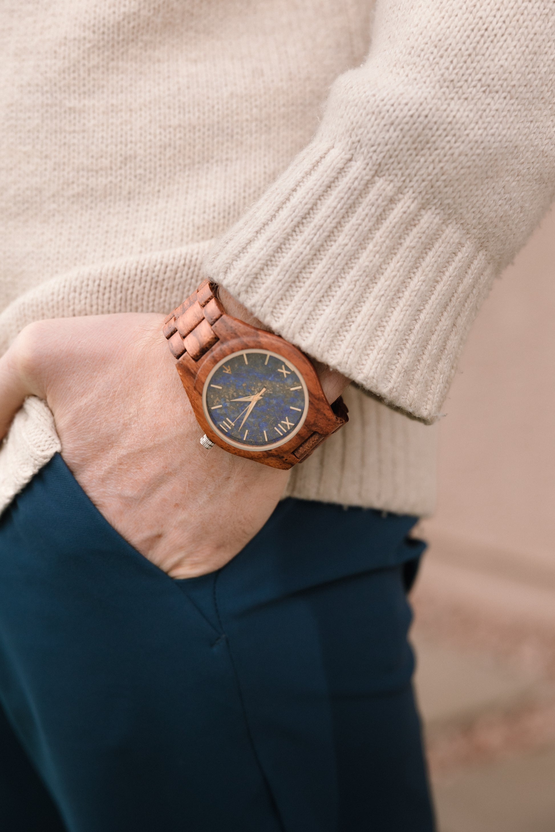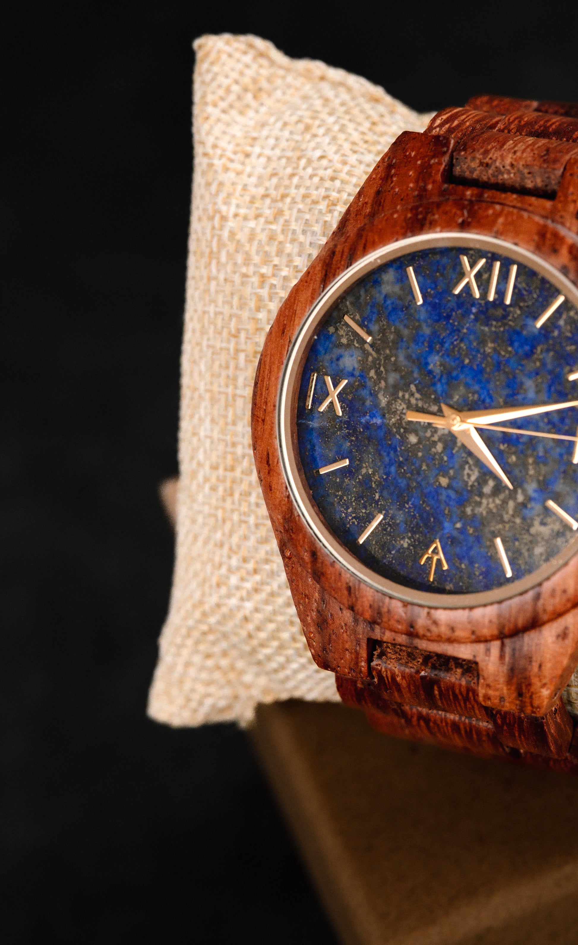 An Ark Timepieces original. With thunder clouds in the sky rain is sure to follow. With a blue marble face and a mahogany wooden band this watch will make an impact every where you turn.