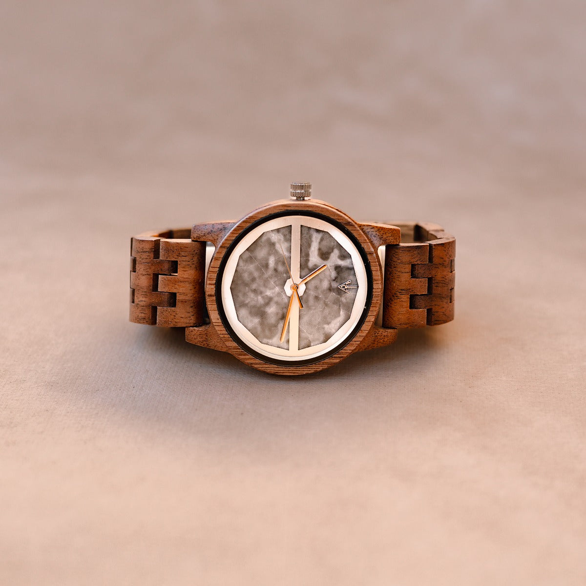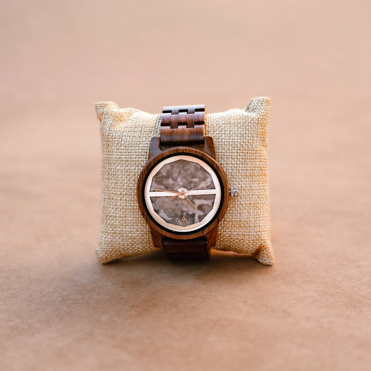 An Ark Timepieces original. With a marble face and a wood band this watch is stylish and is sure to leave a lasting impression.