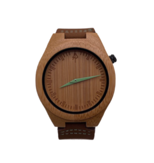 This an Apache Pine classic. Made from bamboo it is sleek and stylish with minimal markings. The beauty is found in the natural wood and not by markings. This watch is perfect for all situations from formal to casual.