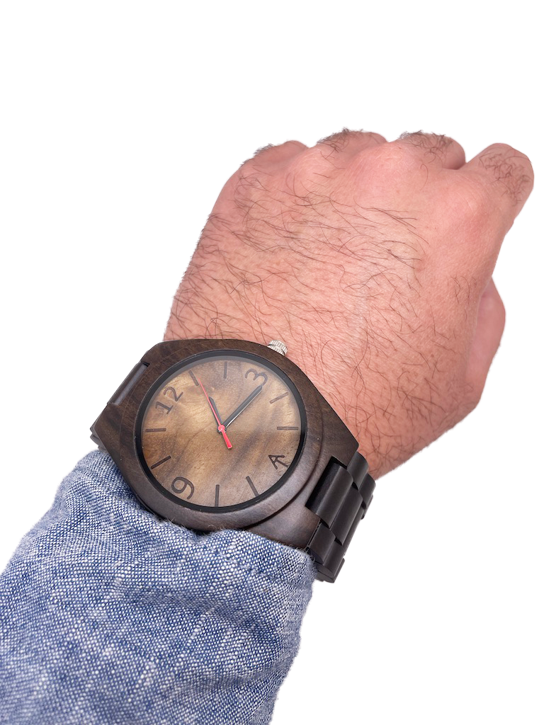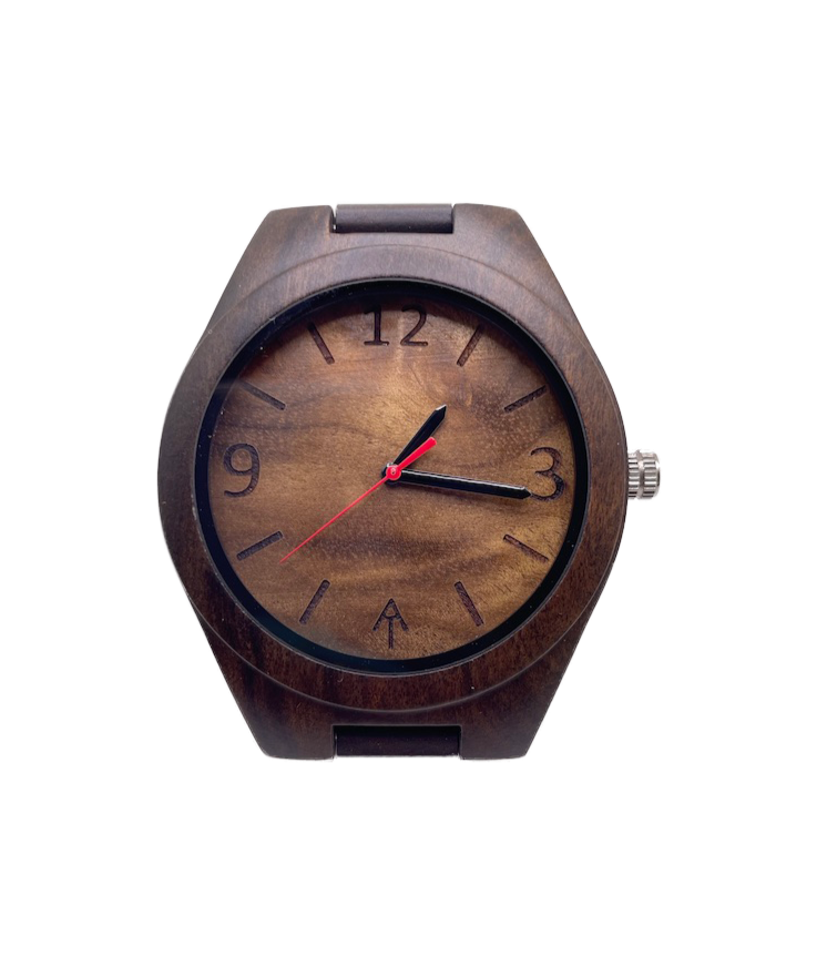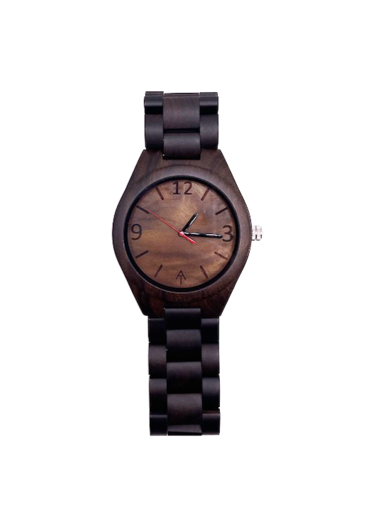 An Ark Timepieces original. With a walnut wooden face and an ebony wooden band this watch is sure to stand out.