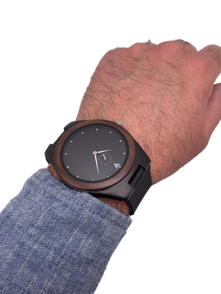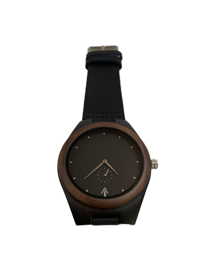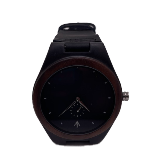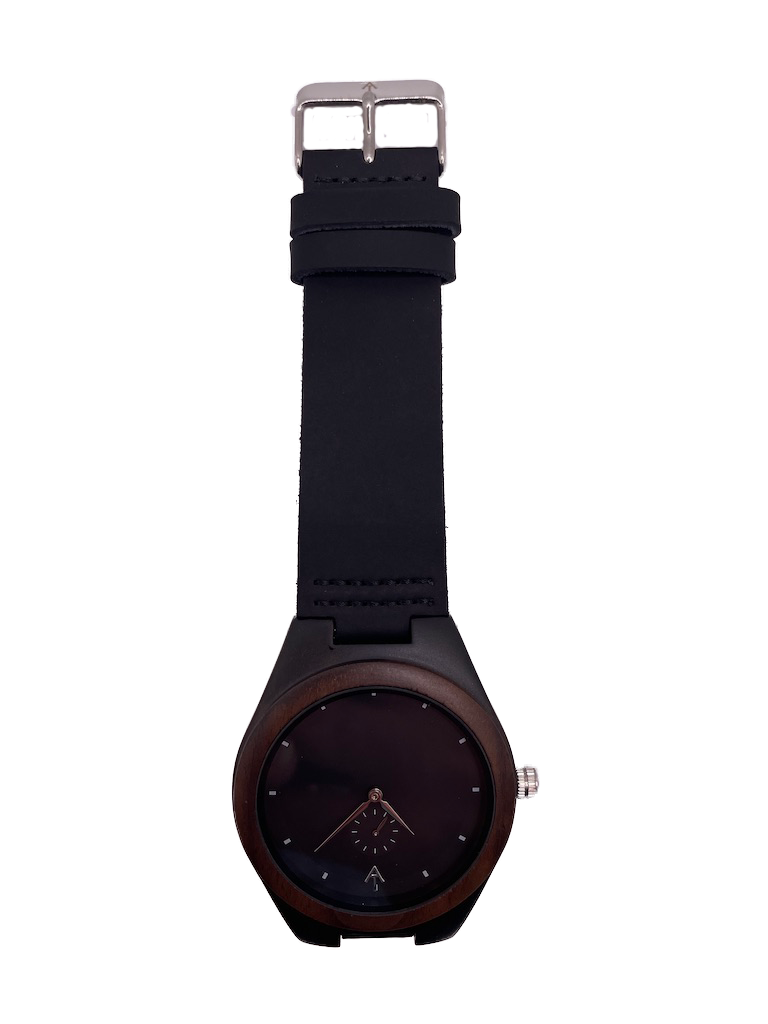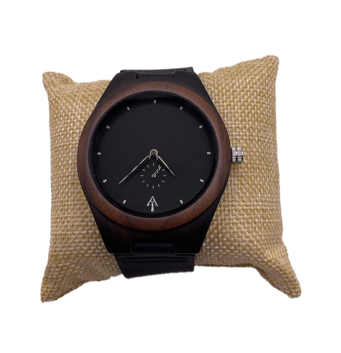An Ark Timepieces original. Reminiscent to a dark shadow this watch is sleek and elegant. With an ebony case it is encircled by a ring of walnut.